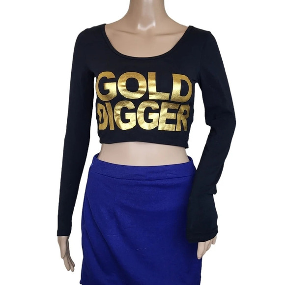 Forever 21 “Gold Digger” Black Gold Crop Top