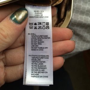 Gold clutch that magnetically unfolds into a longer purse, complete with zippered pocket inside. Used at one wedding, but the interior is clean and like new. Purchased at Forever 21.