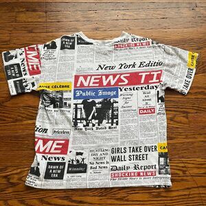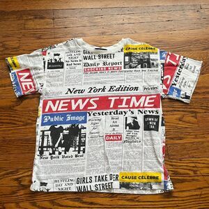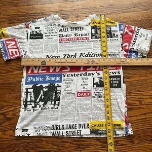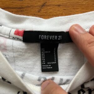 Forever 21 Graphic Newspaper All Over Print White Short Sleeve T-Shirt Woman's S