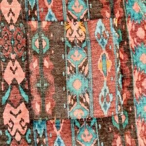 Thin material, makeup tag missing. I'm guessing it is rayon or polyester blend.