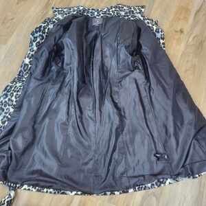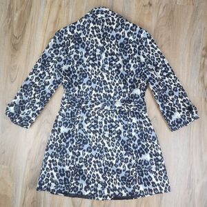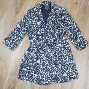 💜Forever 21 Gray & Cream Leopard Print Button & Belted Trench Jacket Large