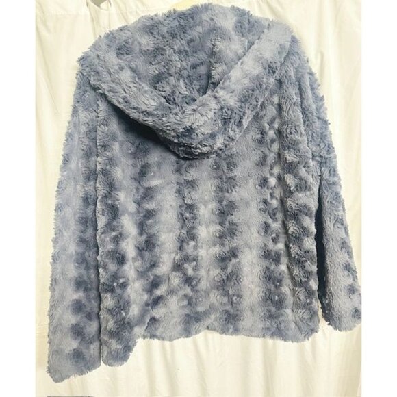 Forever 21 Gray Faux Fur Hooded Mob Wife Soft Plush Texture Buttoned Coat Large