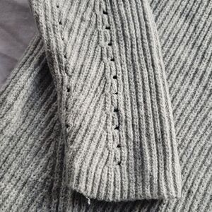 -This is a gently used gray used sweater with cool cut outs and classic design.