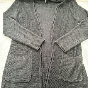 This gray cardigan from Forever 21 offers a relaxed silhouette with an open front design, ideal for layering. Its ribbed knit texture provides a cozy feel, making it a versatile piece for any wardrobe.