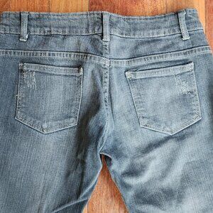 Forever 21 Gray Straight Leg Jeans Size 7. Embroidered faux rips and tears. Excellent condition.