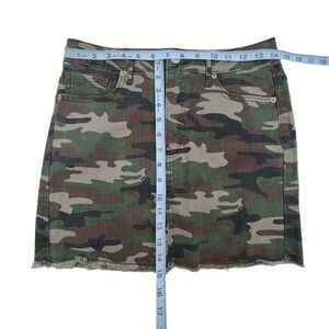 Forever 21 Green Brown Raw Hem Camouflage Mini Jean Skirt Size Medium Women’s