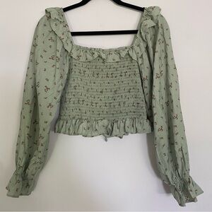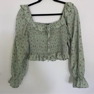 Forever 21 Green Floral Smocked Blouse