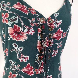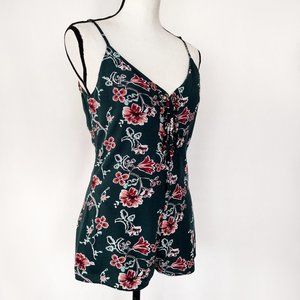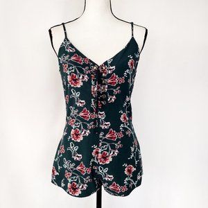 Forever 21 Green Lace-Up Floral Cami Open Back Romper Size S