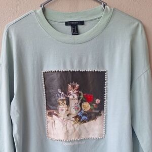 Forever 21 Green Light Spoiled Rotten Round Neck Cats Women's T-Shirt Size S
