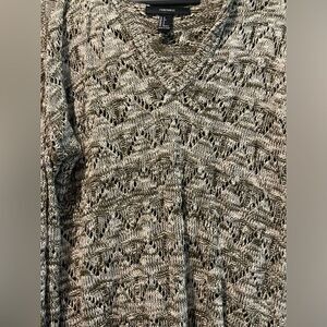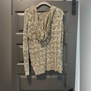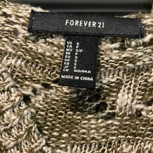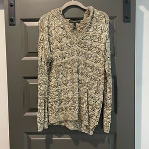 Forever 21 Green and Tan Crochet Hooded Sweater