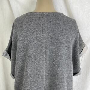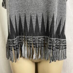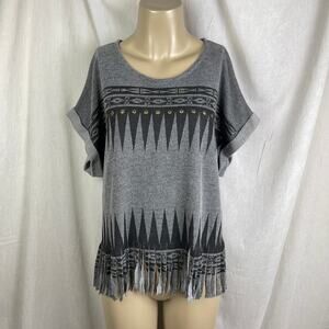 Forever 21 Grey Black Studded Short Sleeve Fringe Top Southwestern Oversized SM