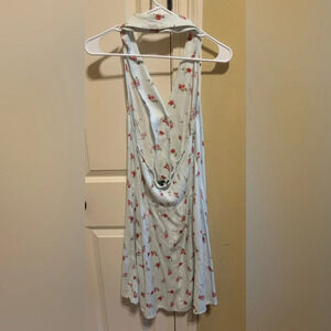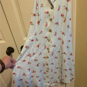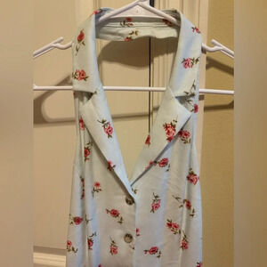 Forever 21 Halter Sleeveless Polo Button Down Dress Blue w/ Flowers Sz L