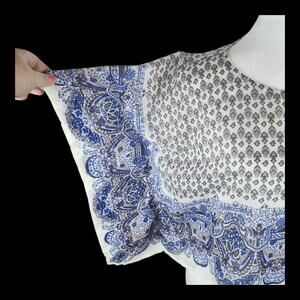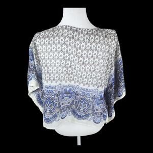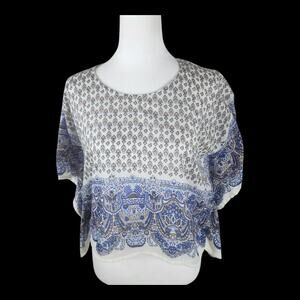 Forever 21 Handkerchief Blouse Blue / Cream / Black Boho Style Size Small