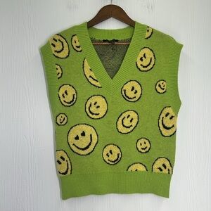 Forever 21 - Happy Times Green With Yellow Smiley Faces Knit Vest Size Small