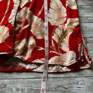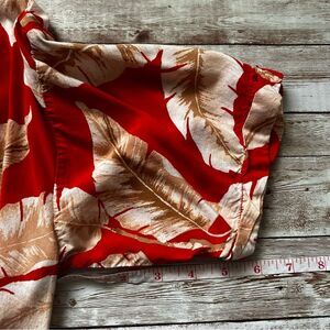 Orange Hawaiian leaf print shirt from Forever 21's Contemporary line. Collared neckline, short sleeves and button-down front with split side hem. Super soft and comfortable.