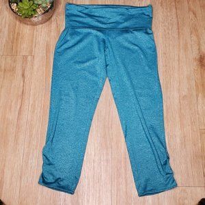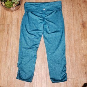 Forever 21 Heather Teal Blue Active Capris Leggings Ruched Keyhole Gym Yoga M