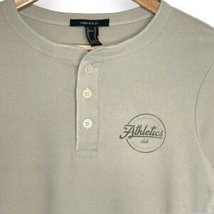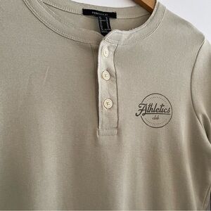 Forever 21 Henley Long Sleeve Shirt "Athletic" Logo Women's M Taupe Buttons