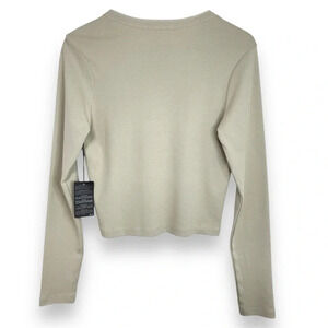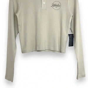 NWT Forever 21 Women's Taupe 3 Button Henley Long Sleeve Top with "Athletic" Logo Design on Left Chest.