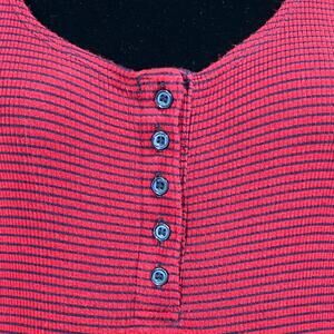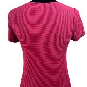 Forever 21 Henley Tee Shirt Top Short Sleeve Size Medium Red Black Stripe