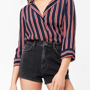 Great condition. Forever 21. High rise mom denim shorts. Faded black. Size 25. Stretch 60% cotton, 31% polyester, 8% rayon, 1% spandex. Waist 11.5” Inseam 2.5” Front Rise 9.5”. All measurements are approximate and taken lying flat. Smoke free home. No trades, offers welcome.