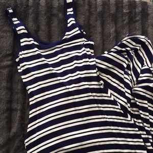 ~ High-low dress from Forever 21 ~ Super stretchy, bouncy material--feels amazing ~ Navy and white stripes ~ NWOT--just never got around to wearing it ~ Pristine condition ~ Size S, but the material is so stretchy it could fit bigger as well ~