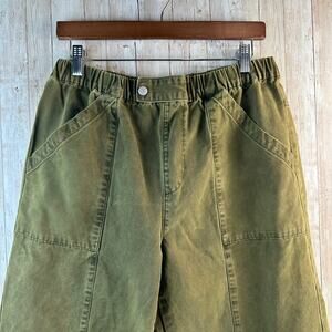Forever 21 High-Rise Pants Womens L 30x27 Olive Green Snap Hem Canvas Streetwear-snap/pull on elastic waist baggy pockets canvas durable streetwear pants