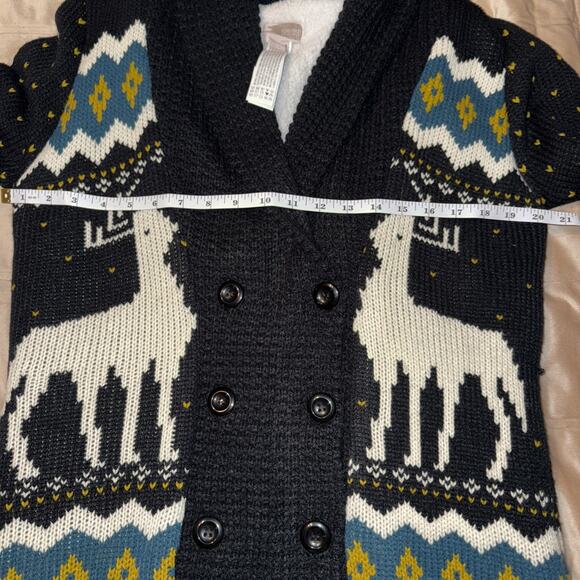 Forever 21 Holiday Reindeer Button Up Cardigan Black Sweater Sz M SO COZY!