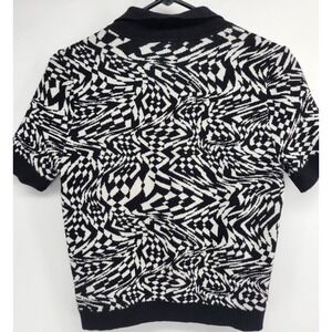 Forever 21 Ivory Black Striped Short Sleeve Collared Sweater Women's Size M