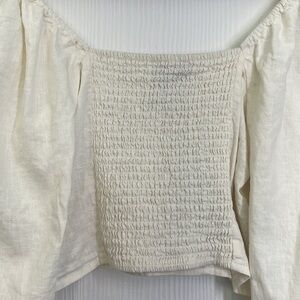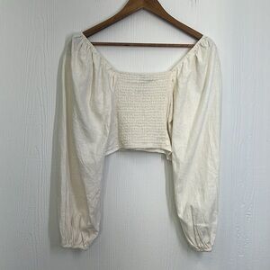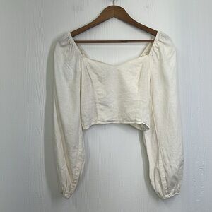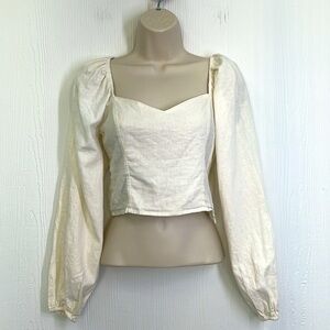 Forever 21 - Ivory Linen Blend Long Puffed Sleeves Heart Neckline Elastic Crop Size Medium