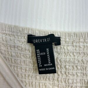 Forever 21 - Ivory Linen Blend Puffed Sleeve Heart Neckline Crop Size Medium