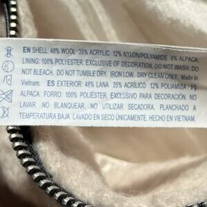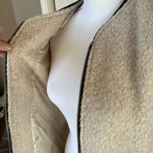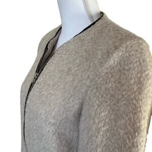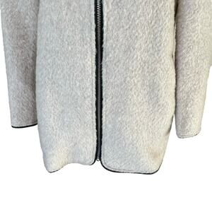 Forever 21 Jacket Size M Ivory Black Trim Full Zip Furry Fuzzy Teddy Longline