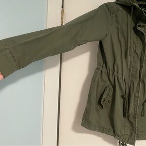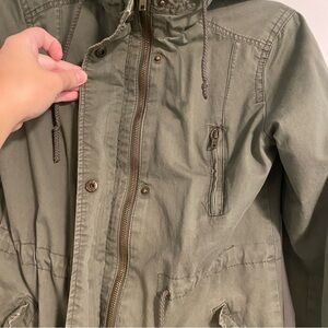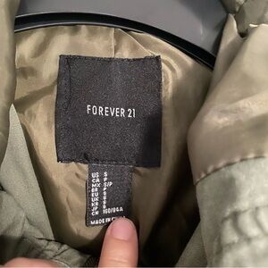 Forever 21 Jacket Women's Size S Military Utility Jacket Hooded Army Olive Green