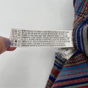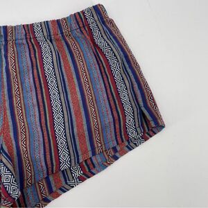 Details: Multicolored Shorts, Slit Hem, Tribal-like patterns