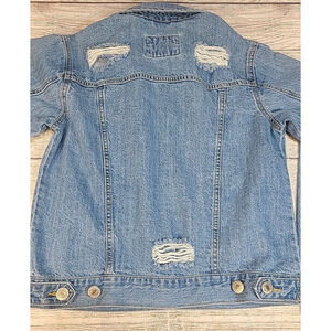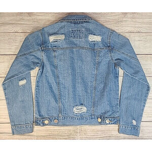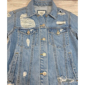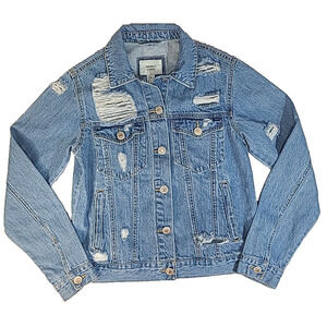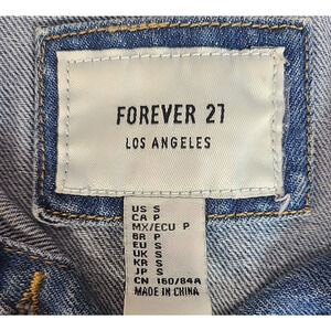 Forever 21 Jean Jacket Women's Small Blue Denim Distressed Button Front Pockets