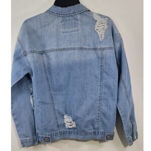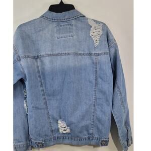 Forever 21 Jean Jacket Womens Small Distressed Blue Punk Rock Grunge Jacket