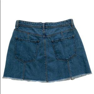 Forever 21 Jean Mini Skirt Seamed Front Distressed Raw Hem Denim Skirt Size 30
