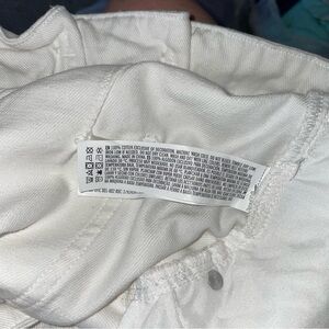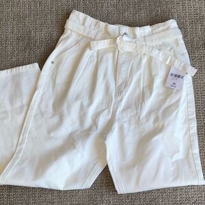 Removable front tie 1" belt High waist Back Pockets (looks like slight discoloration on one pocket) Front Pockets and pleating. Silver Zipper, button, rivets 100% Cotton Material very soft and comfy WHITE WITH A YELLOWISH UNDERTONE THere is a small mark on the back of one pant leg that may or may not come out when washed See last pic All Pictures are of the actual item being sold Approximate Measurements while laying flat: Waist 15 in Inseam 26 in Rise 15 in