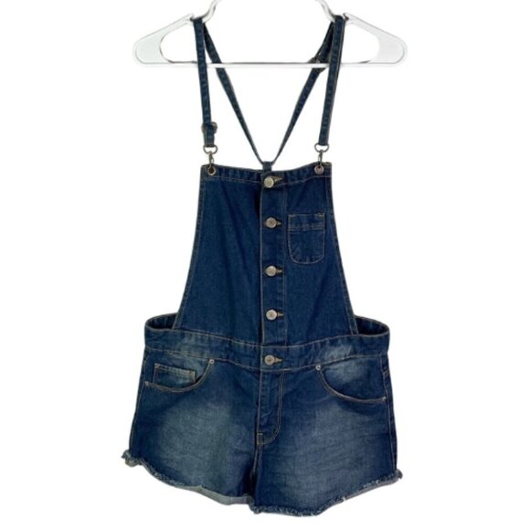 Forever 21 Jumper Jeans Shorts Distressed Denim Overalls Button Down Blue W 26