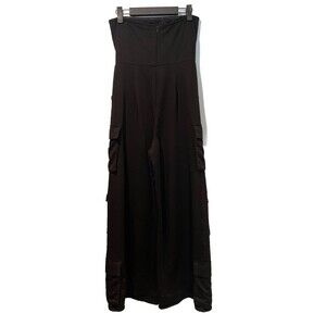 Forever 21 Strapless Jumpsuit Womens Small Black Wide Leg Pockets Cargo Romper