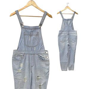 Forever 21 Junior Girl's Light Wash Ripped Leg Overalls