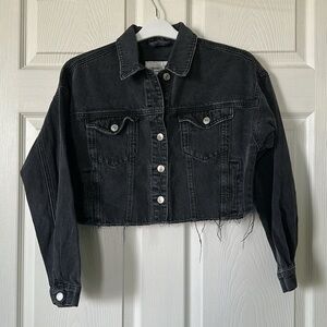 Forever 21 Juniors Dark Gray Crop Jean Jacket Size Small