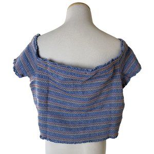 Forever 21 Knit Smocked Off the Shoulder Blue Crop Top Size 2X NWT