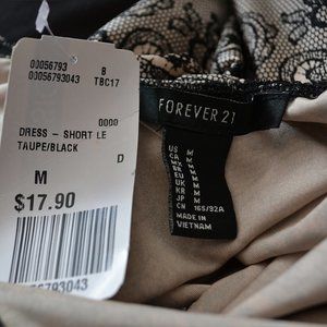 Forever 21 Lace Print Pattern Bodycon Dress Taupe Black Size M NWT