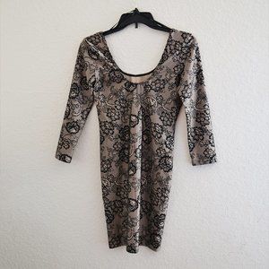 Forever 21 Lace Print Pattern Bodycon Dress Taupe
