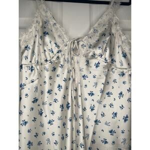 Forever 21 Lace-Trim Floral Midi Slip Dress White &Blue Size: M Women’s