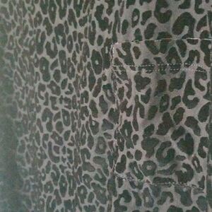 Stretchy fabric with animal print ( cheetah or leopard i get them mixed up). Its a dark black flocked / velvet design with a lighter black background. Smoke free home. Excellent condition. Mobwife, casual, goth, burnout, dress up, tone on tone