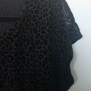 Forever 21 Large Black Boxy Crop Animal Print Velvet Flocked Short Sleeve Top