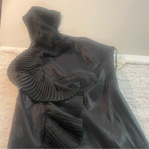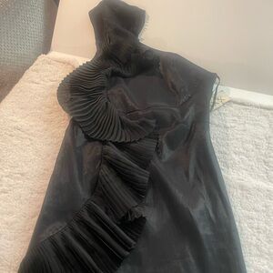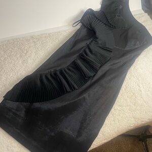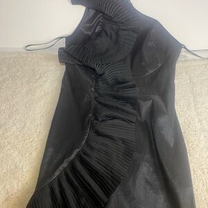 Chic black dress from Forever 21. One sided ruffle from shoulder to hem. Silk like material. Perfect for dancing, cocktails and after-dinner events.