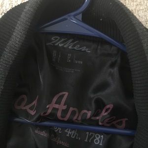 Varsity jacket. Style is like a cardigan. Very stylish.... There is a hole in the pocket.