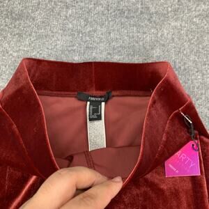 FOREVER 21 LEGGINGS WOMENS M MEDIUM CRIMSON CRUSHED VELVET PULL ON STRETCH PANTS